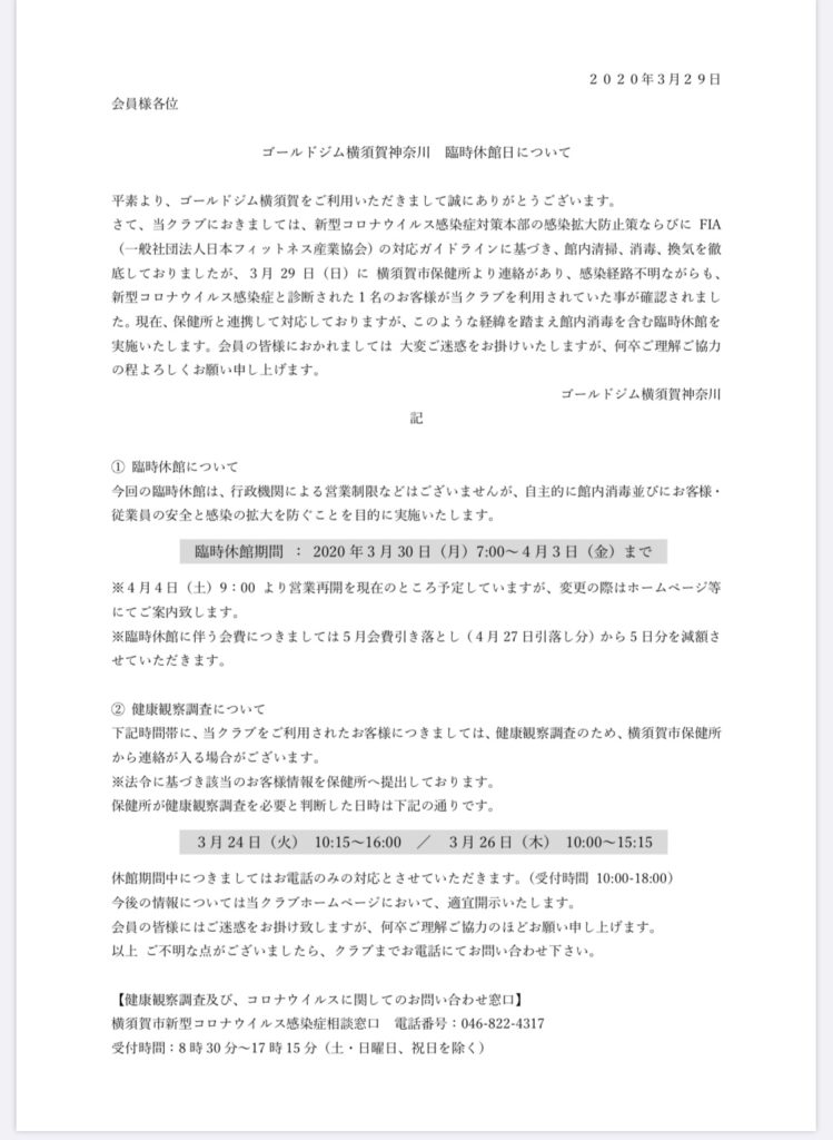 消毒の為に休館するのと同じ日に利用されていた人は、保健所から連絡が入るそうです。